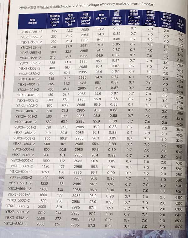 YBX3系列高壓隔爆型三相異步電動機參數表